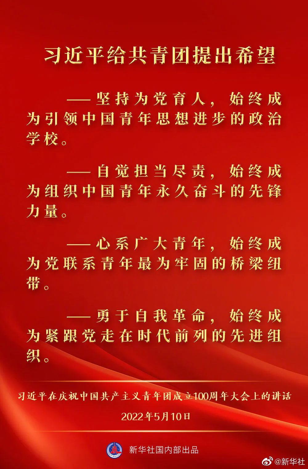 今(jin)天(tian)(10日)上午(wu),慶祝中(zhong)(zhong)國共產主(zhu)(zhu)義(yi)青年團成立100周年大(da)(da)會(hui)(hui)在北京人民大(da)(da)會(hui)(hui)堂隆重舉行。中(zhong)(zhong)共中(zhong)(zhong)央總書記、國家主(zhu)(zhu)席、中(zhong)(zhong)央軍委主(zhu)(zhu)席習近平出席大(da)(da)會(hui)(hui)并發表重要(yao)講話(hua)。