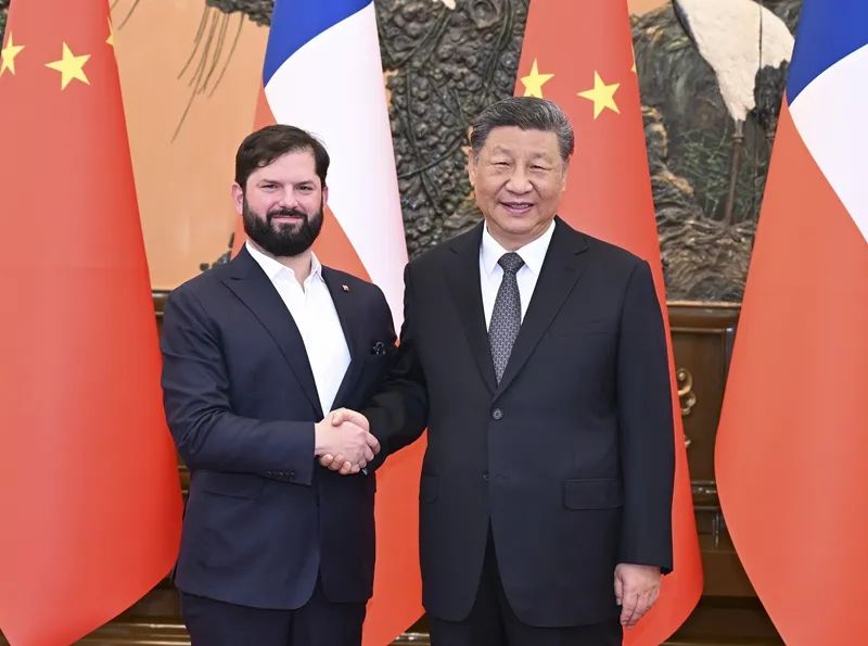 習(xi)近平指出(chu),今年是中(zhong)(zhong)智(zhi)建交(jiao)55周年。55年前,兩國(guo)老一輩領導人高(gao)瞻遠(yuan)矚,沖破(po)(po)冷戰陰霾,開創了新中(zhong)(zhong)國(guo)同(tong)(tong)(tong)南(nan)美(mei)國(guo)家建交(jiao)先(xian)河。半個多世紀以來,無論國(guo)際風(feng)云如何變化,中(zhong)(zhong)智(zhi)關系這艘(sou)航(hang)船始終(zhong)乘風(feng)破(po)(po)浪,引領中(zhong)(zhong)國(guo)同(tong)(tong)(tong)拉美(mei)國(guo)家關系發展潮流。中(zhong)(zhong)國(guo)和(he)智(zhi)利要不斷豐富兩國(guo)全(quan)面(mian)戰略伙伴關系的時代(dai)內涵,打造中(zhong)(zhong)拉共同(tong)(tong)(tong)發展樣板(ban)、南(nan)南(nan)合作典范,共同(tong)(tong)(tong)促進(jin)人類和(he)平和(he)進(jin)步(bu)事業。
