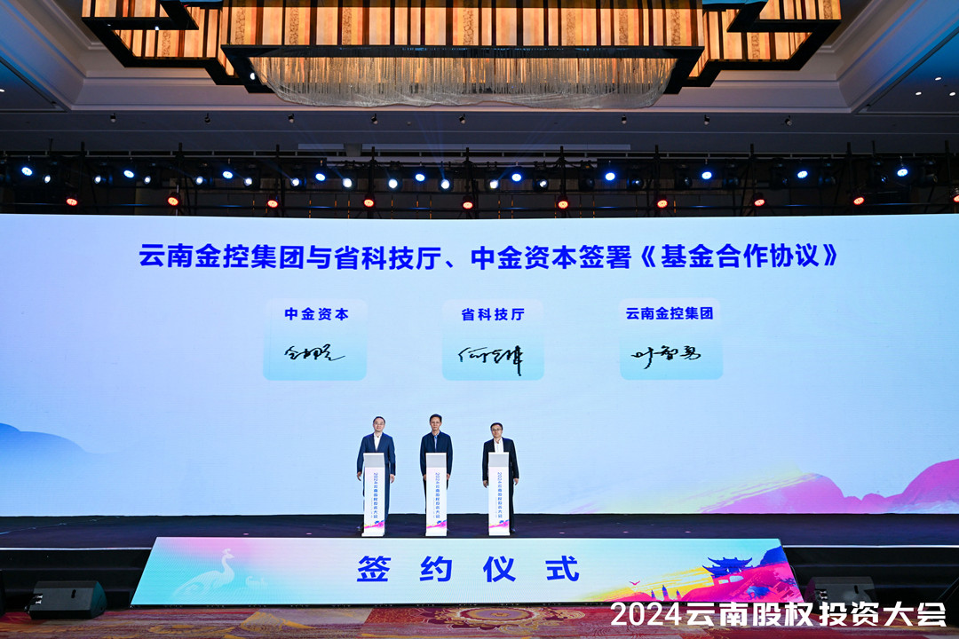 近日,2024云(yun)南(nan)股權投資大會在(zai)昆明順利召開。作為大會重(zhong)要成果(guo)之(zhi)一,省科技(ji)廳(ting)(ting)(ting)、云(yun)南(nan)金控集(ji)團、中(zhong)金資本簽(qian)署了《基(ji)金合作協議》,旨(zhi)在(zai)共同探索(suo)合作設立騰沖科學家論壇發展(zhan)基(ji)金,促進科技(ji)成果(guo)轉化,推動新質生產力(li)加快發展(zhan)。云(yun)南(nan)省科技(ji)廳(ting)(ting)(ting)副廳(ting)(ting)(ting)長何革偉、中(zhong)金資本董事總經理(li)鐘險、云(yun)南(nan)金控集(ji)團總裁葉智勇在(zai)大會現(xian)場(chang)簽(qian)約。