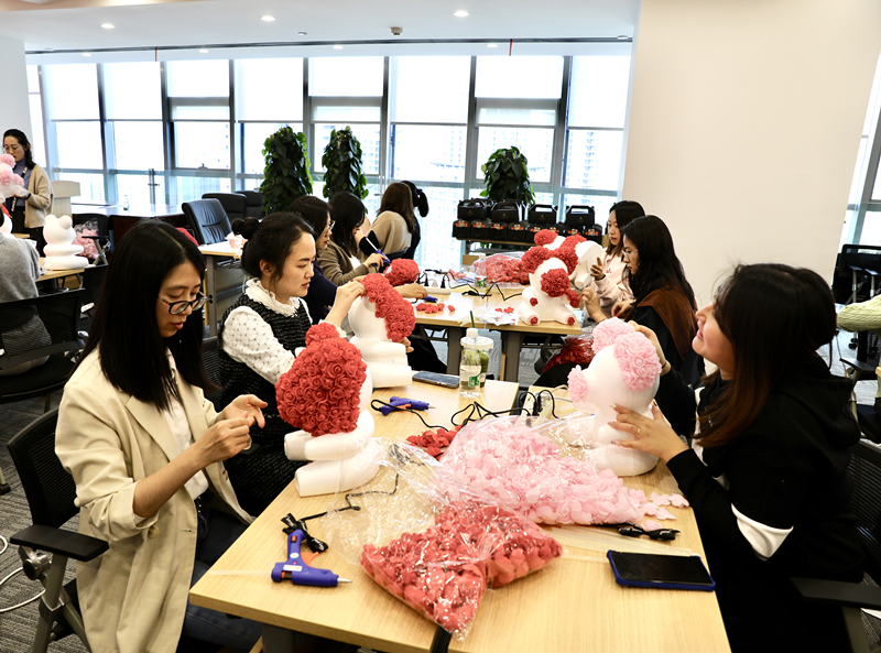插(cha)花培訓邀請了專業花藝師(shi),帶領大家學習選材、配色、布局(ju)等插(cha)花方法(fa),并(bing)進(jin)行了現(xian)(xian)場實操,在花藝老師(shi)的(de)指(zhi)導下,女(nv)(nv)職工(gong)(gong)們紛紛拿起花朵(duo),認(ren)真構思,投(tou)入創作(zuo),熱烈(lie)地相互交流,現(xian)(xian)場充滿歡聲笑語。今后,集團(tuan)工(gong)(gong)會(hui)將持續(xu)發(fa)揮在職工(gong)(gong)家庭文(wen)明建設和(he)豐富員(yuan)工(gong)(gong)精神文(wen)化生(sheng)(sheng)活(huo)中的(de)積極作(zuo)用,開展形式多樣的(de)職工(gong)(gong)文(wen)體活(huo)動,進(jin)一步增強工(gong)(gong)會(hui)組織的(de)吸引力(li)、凝聚力(li),助力(li)集團(tuan)女(nv)(nv)職工(gong)(gong)對(dui)美好生(sheng)(sheng)活(huo)的(de)追求,為女(nv)(nv)職工(gong)(gong)全面發(fa)展和(he)幸福(fu)生(sheng)(sheng)活(huo)營(ying)造良好氛圍。