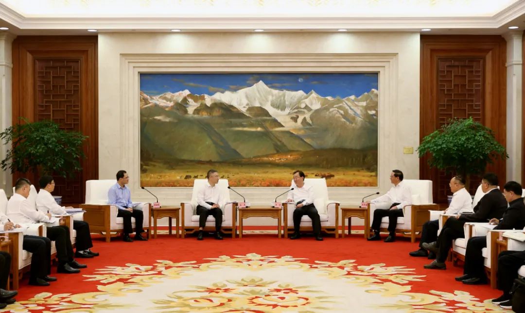 8月8日,省(sheng)委書記王寧、省(sheng)長王予波在昆明與(yu)(yu)中(zhong)國農(nong)(nong)業銀行(xing)董(dong)事長谷澍一行(xing)舉行(xing)工作會(hui)談,共同見證省(sheng)政(zheng)府(fu)與(yu)(yu)中(zhong)國農(nong)(nong)業銀行(xing)簽(qian)署金融(rong)支持(chi)鄉村振興和(he)綠色經(jing)濟發展合作協(xie)議。