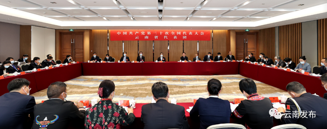 10月17日(ri),云南省代表(biao)團舉行會議,繼續深入學(xue)習、認(ren)真討論黨的(de)二十大報(bao)告。