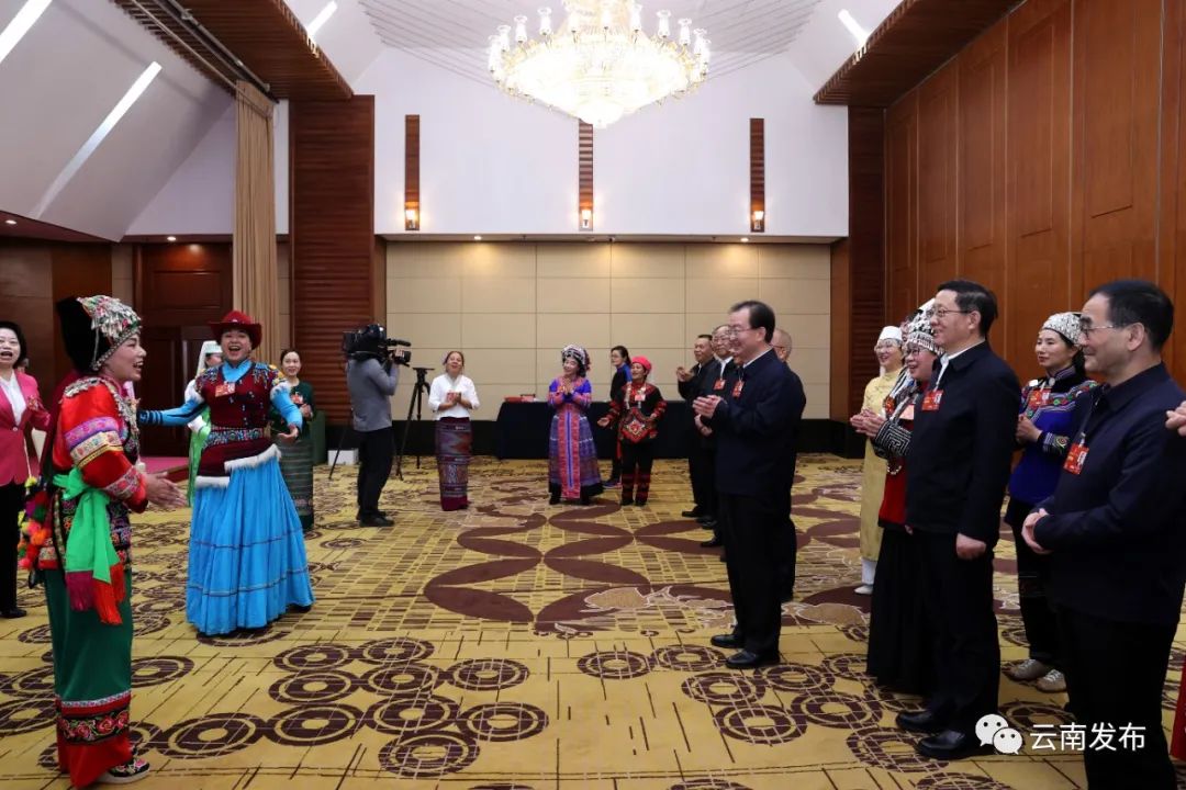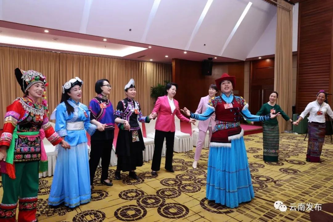云南省(sheng)代表團30位(wei)女(nv)(nv)代表、9位(wei)女(nv)(nv)工作人員、2位(wei)女(nv)(nv)記(ji)者(zhe)中(zhong)有29名少數民族(zu)同志,大(da)家(jia)身(shen)著(zhu)絢麗的(de)(de)民族(zu)服裝(zhuang)共同慶祝自己的(de)(de)節日,成(cheng)為一(yi)道靚麗的(de)(de)風(feng)景線(xian)。女(nv)(nv)代表們一(yi)起唱起《唱支山歌給黨(dang)聽(ting)》等(deng)歌曲,歡樂的(de)(de)歌聲和燦爛的(de)(de)笑容充滿現場,傳遞著(zhu)大(da)家(jia)節日的(de)(de)喜悅心情和高(gao)漲的(de)(de)履(lv)職熱忱。