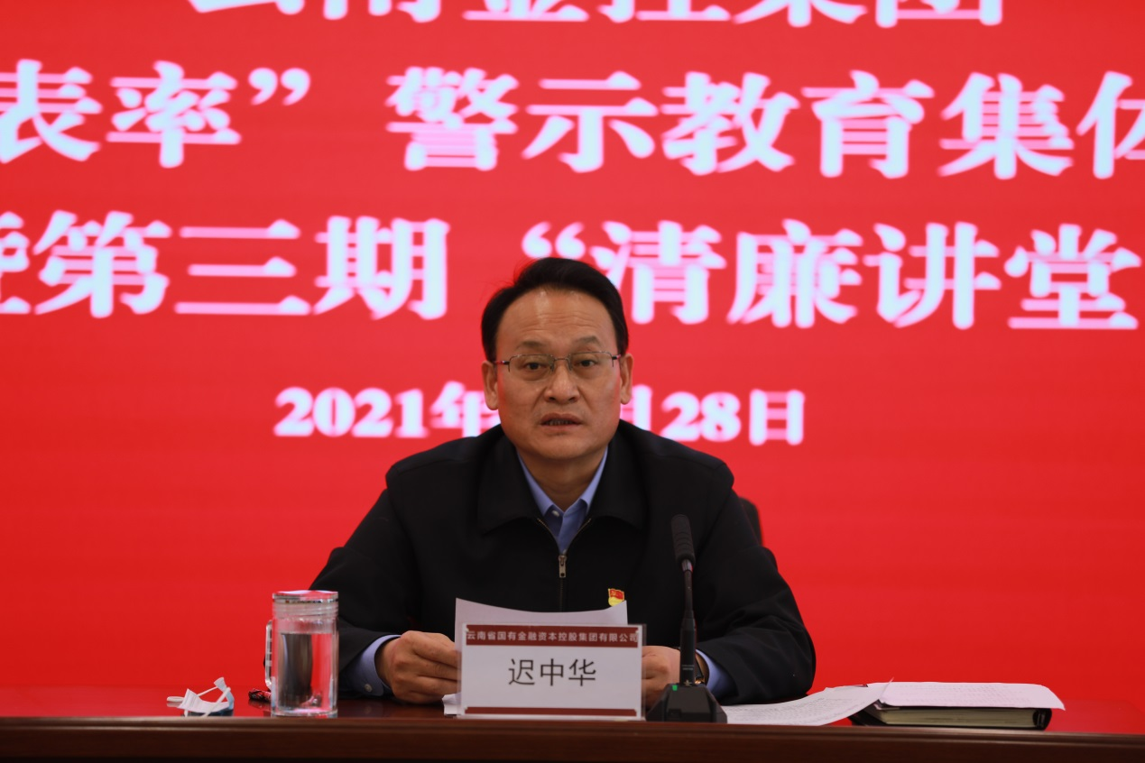? 集團(tuan)黨委(wei)(wei)(wei)組織(zhi)觀看了《國資(zi)“蛀蟲”覆滅記(ji)——云南省(sheng)(sheng)(sheng)國有資(zi)本運營有限(xian)公司原(yuan)黨委(wei)(wei)(wei)書(shu)記(ji)、董事長劉崗嚴重違(wei)紀違(wei)法(fa)案剖析(xi)》警示教育片,傳達學(xue)習(xi)了《省(sheng)(sheng)(sheng)紀委(wei)(wei)(wei)省(sheng)(sheng)(sheng)監委(wei)(wei)(wei)關于六起形式主義(yi)官(guan)僚主義(yi)典(dian)型問題(ti)的(de)通報》,集團(tuan)黨委(wei)(wei)(wei)書(shu)記(ji)、董事長遲(chi)中華同志(zhi)對全體參加活(huo)動(dong)人員(yuan)開展了集體廉政談(tan)話,要求集團(tuan)公司領(ling)導干部把(ba)帶頭(tou)做(zuo)到“八(ba)個(ge)(ge)表(biao)率”、堅守“六條(tiao)底線”、發揚“六個(ge)(ge)好作(zuo)風(feng)”作(zuo)為(wei)貫(guan)徹落實省(sheng)(sheng)(sheng)委(wei)(wei)(wei)“五個(ge)(ge)作(zuo)表(biao)率”要求的(de)金控實踐,持續(xu)推進“五個(ge)(ge)作(zuo)表(biao)率”專題(ti)學(xue)習(xi)教育抓實抓細(xi)。