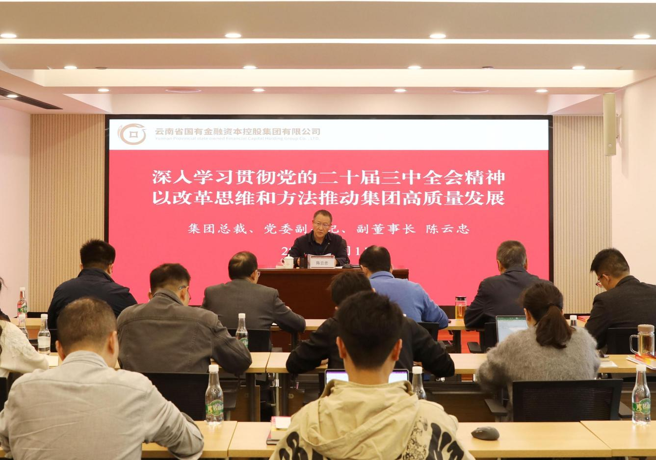 陳云忠指(zhi)出(chu)(chu),黨的(de)(de)(de)二十屆三中(zhong)全(quan)會(hui)是(shi)在(zai)以中(zhong)國(guo)(guo)式現代化全(quan)面(mian)推(tui)進(jin)強國(guo)(guo)建設(she)、民族(zu)復(fu)興偉(wei)業的(de)(de)(de)關鍵時(shi)期召開的(de)(de)(de)一(yi)次十分重(zhong)要的(de)(de)(de)會(hui)議。全(quan)會(hui)通過的(de)(de)(de)《決(jue)定》,從戰略和全(quan)局的(de)(de)(de)高度,對進(jin)一(yi)步全(quan)面(mian)深化改(gai)革(ge)進(jin)行(xing)了系(xi)統部署,提出(chu)(chu)了300多項重(zhong)大改(gai)革(ge)舉措,其中(zhong)涉及的(de)(de)(de)財稅金融和國(guo)(guo)資國(guo)(guo)企等重(zhong)點領域改(gai)革(ge),與(yu)金控集(ji)團(tuan)(tuan)主責主業息息相關,為集(ji)團(tuan)(tuan)深化改(gai)革(ge),開展融資擔(dan)保、產業投資基金體系(xi)建設(she)等重(zhong)點工作指(zhi)明(ming)了方向(xiang),提供了根本遵循(xun)。