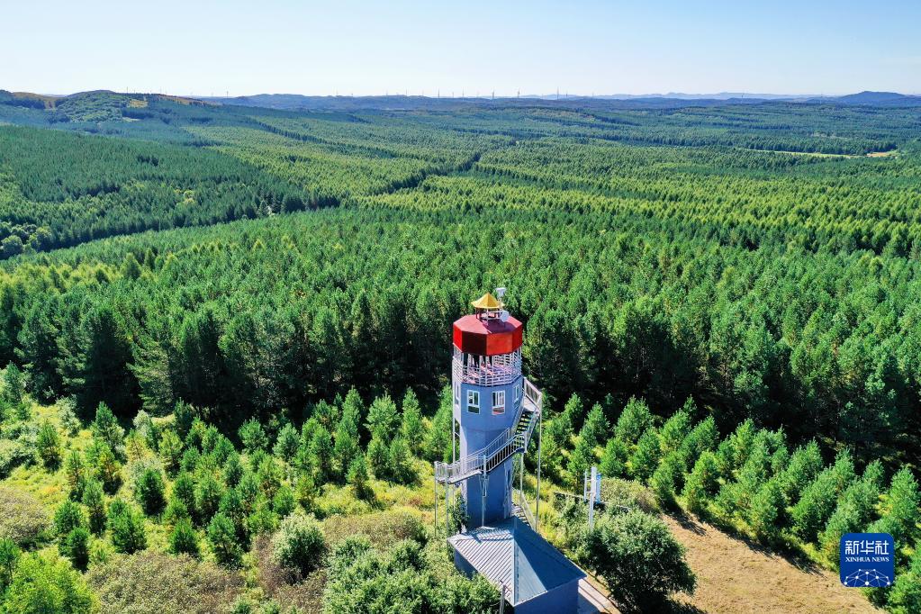 ?河北(bei)塞(sai)罕壩機械林(lin)場內(nei)的(de)望海樓(2021年8月23日攝(she)(she),無人機照(zhao)片)。新華社記者 牟宇(yu) 攝(she)(she)