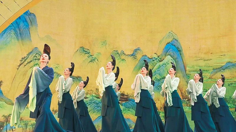 圖為(wei)圍(wei)繞傳世名作《千里江山圖》創排的(de)舞(wu)蹈詩劇《只此青綠》亮(liang)相2022年(nian)中(zhong)央(yang)廣(guang)(guang)播(bo)電視總(zong)(zong)臺春節聯(lian)歡(huan)晚會(視頻(pin)截圖)。中(zhong)央(yang)廣(guang)(guang)播(bo)電視總(zong)(zong)臺供圖