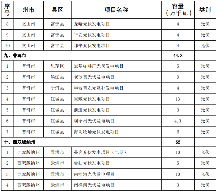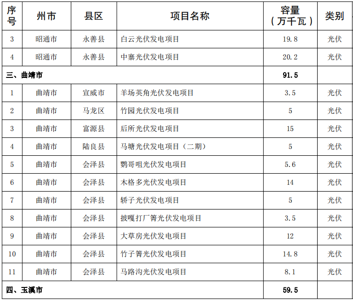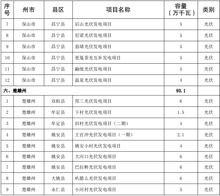 結合全省新能源(yuan)(yuan)項(xiang)目庫(ku)情況(kuang),考(kao)慮(lv)新能源(yuan)(yuan)對全省能源(yuan)(yuan)投資(zi)的(de)重(zhong)要支撐作用(yong),納入云南省2024年第一(yi)批新能源(yuan)(yuan)項(xiang)目開發建設方(fang)案實施(shi)的(de)項(xiang)目共(gong)141個,裝機(ji)1018.325萬千瓦(wa)。