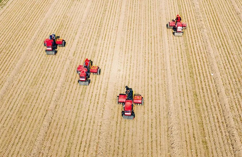 我國糧食安全(quan)保(bao)(bao)障(zhang)能力(li)持續(xu)提升,糧食生產(chan)實(shi)現(xian)“十九連豐”,總產(chan)量連續(xu)8年穩定在1.3萬億斤以上。圖為(wei)2023年2月4日,在山(shan)東省聊城市東昌府區斗虎屯鎮楊廟(miao)村,運興農機專業(ye)合作(zuo)社的員工駕駛著鎮壓(ya)機械為(wei)托管的冬小麥進行鎮壓(ya)控旺(wang)長保(bao)(bao)墑情作(zuo)業(ye)。人(ren)民圖片(pian) 張(zhang)振祥/攝
