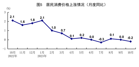 10月份(fen),全(quan)國居民消費(fei)價(jia)(jia)(jia)格(ge)(ge)(ge)(ge)(CPI)同(tong)比(bi)下(xia)降(jiang)(jiang)0.2%,環比(bi)下(xia)降(jiang)(jiang)0.1%。分(fen)類(lei)別看,食(shi)品(pin)煙(yan)酒(jiu)價(jia)(jia)(jia)格(ge)(ge)(ge)(ge)同(tong)比(bi)下(xia)降(jiang)(jiang)2.1%,衣著價(jia)(jia)(jia)格(ge)(ge)(ge)(ge)上(shang)漲(zhang)(zhang)(zhang)1.1%,居住價(jia)(jia)(jia)格(ge)(ge)(ge)(ge)上(shang)漲(zhang)(zhang)(zhang)0.3%,生活(huo)用品(pin)及服務價(jia)(jia)(jia)格(ge)(ge)(ge)(ge)下(xia)降(jiang)(jiang)0.6%,交通(tong)通(tong)信價(jia)(jia)(jia)格(ge)(ge)(ge)(ge)下(xia)降(jiang)(jiang)0.9%,教育文化娛樂(le)價(jia)(jia)(jia)格(ge)(ge)(ge)(ge)上(shang)漲(zhang)(zhang)(zhang)2.3%,醫療保健價(jia)(jia)(jia)格(ge)(ge)(ge)(ge)上(shang)漲(zhang)(zhang)(zhang)1.3%,其他用品(pin)及服務價(jia)(jia)(jia)格(ge)(ge)(ge)(ge)上(shang)漲(zhang)(zhang)(zhang)3.6%。在(zai)食(shi)品(pin)煙(yan)酒(jiu)價(jia)(jia)(jia)格(ge)(ge)(ge)(ge)中,豬(zhu)肉價(jia)(jia)(jia)格(ge)(ge)(ge)(ge)下(xia)降(jiang)(jiang)30.1%,鮮(xian)(xian)菜價(jia)(jia)(jia)格(ge)(ge)(ge)(ge)下(xia)降(jiang)(jiang)3.8%,糧食(shi)價(jia)(jia)(jia)格(ge)(ge)(ge)(ge)上(shang)漲(zhang)(zhang)(zhang)0.6%,鮮(xian)(xian)果價(jia)(jia)(jia)格(ge)(ge)(ge)(ge)上(shang)漲(zhang)(zhang)(zhang)2.2%。扣(kou)除食(shi)品(pin)和(he)能源價(jia)(jia)(jia)格(ge)(ge)(ge)(ge)后的核心CPI同(tong)比(bi)上(shang)漲(zhang)(zhang)(zhang)0.6%。1-10月份(fen),全(quan)國居民消費(fei)價(jia)(jia)(jia)格(ge)(ge)(ge)(ge)同(tong)比(bi)上(shang)漲(zhang)(zhang)(zhang)0.4%。
