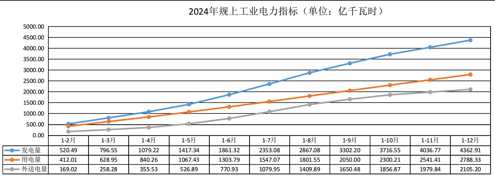 2024年,全省全部發(fa)(fa)電(dian)量4646.35億(yi)(yi)千瓦(wa)時(shi)(shi)(shi),同比(bi)增長(chang)(chang)11.9%。全省規模(mo)以上發(fa)(fa)電(dian)企業(ye)發(fa)(fa)電(dian)量4362.91億(yi)(yi)千瓦(wa)時(shi)(shi)(shi),同比(bi)增長(chang)(chang)10.6%。其中:水(shui)電(dian)3107.26億(yi)(yi)千瓦(wa)時(shi)(shi)(shi),增長(chang)(chang)6.9%;火電(dian)599.66億(yi)(yi)千瓦(wa)時(shi)(shi)(shi),下降6.5%;風電(dian)374.30億(yi)(yi)千瓦(wa)時(shi)(shi)(shi),增長(chang)(chang)32.6%;太陽能(neng)發(fa)(fa)電(dian)281.70億(yi)(yi)千瓦(wa)時(shi)(shi)(shi),增長(chang)(chang)151.0%。