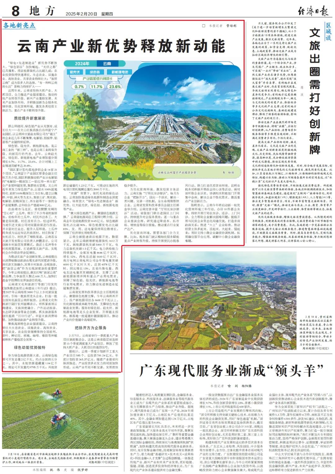 “綠(lv)(lv)電+先進制造業”新優勢(shi)不斷放(fang)大(da),“綠(lv)(lv)色鋁(lv)谷”加快崛起,“光伏之都”已具雛形,清潔能源裝機(ji)占(zhan)比(bi)超九成;農業投資(zi)保持(chi)快速增長,生態農業、設施農業、高效農業、共享(xiang)農業持(chi)續(xu)壯大(da);“旅居云南”成為很多人的選擇,“有一(yi)種叫(jiao)云南的生活”影響力持(chi)續(xu)擴大(da)……