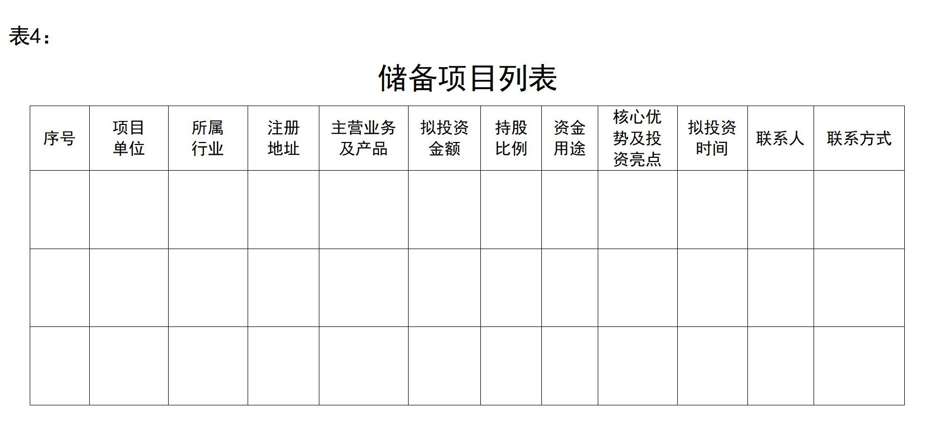 ? ? ??(二)項(xiang)目儲備情(qing)況(列(lie)出(chu)全部儲備項(xiang)目基本情(qing)況,表4)