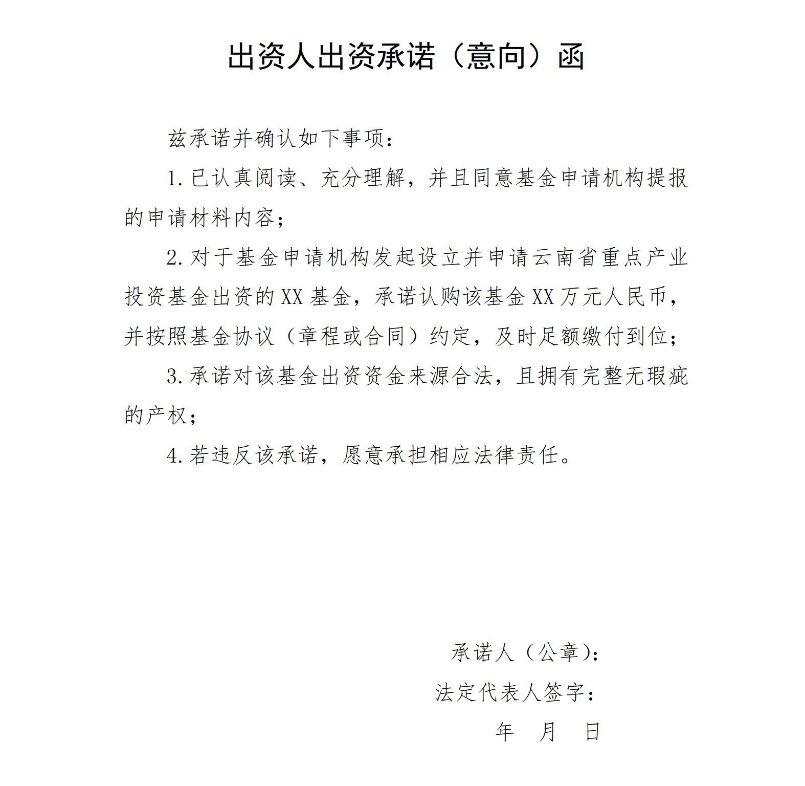 ? ? ??(一)具有(you)(you)較強的募資能力,有(you)(you)較明(ming)確(que)的意(yi)向出(chu)資人和出(chu)資金額,已出(chu)具承諾函或意(yi)向函的出(chu)資金額占比不低(di)于50%,承諾在(zai)中選后最遲6個月(yue)內(nei)按時(shi)完成設立(li)任(ren)務,原則上9個月(yue)內(nei)落實首批投資;