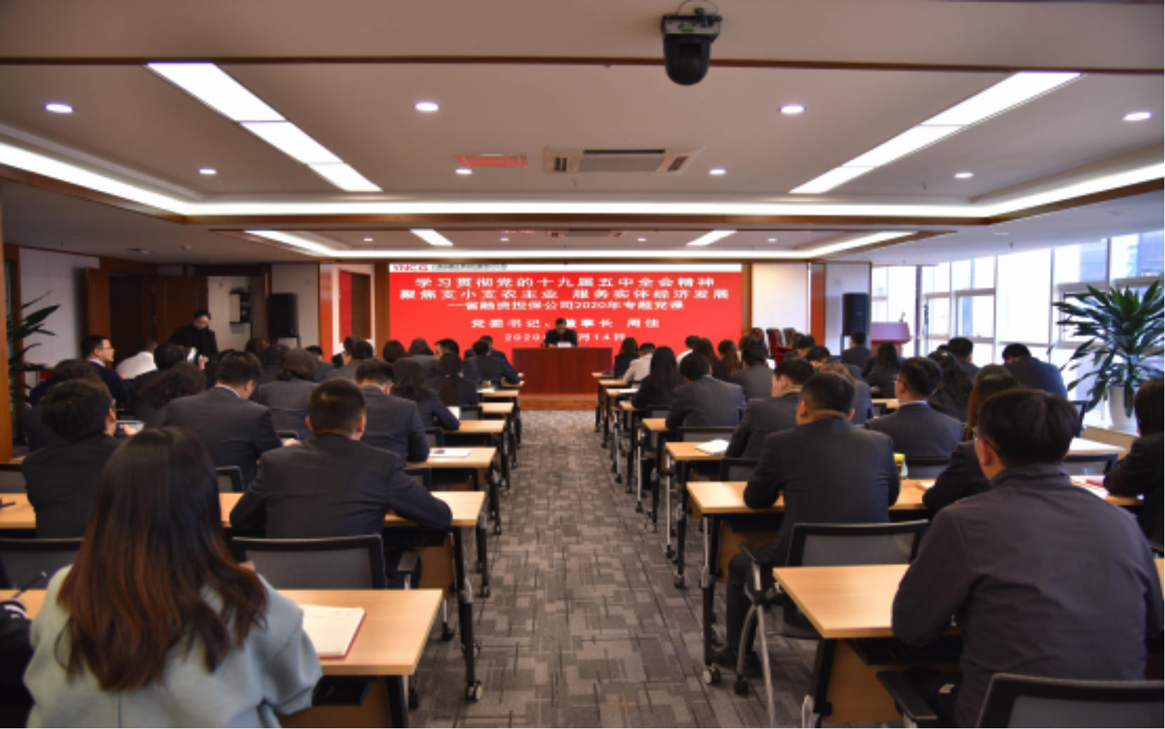 ? ? ? ?為進一步學習貫徹黨的十九屆五中全會精神,教育引導公司廣大黨員和員工深刻領會“新時代”深化金融改革發展的新要求,推動公司高質量發展,近日省融資擔保公司黨委書記、董事長周佳同志為公司全體員工講授專題黨課。