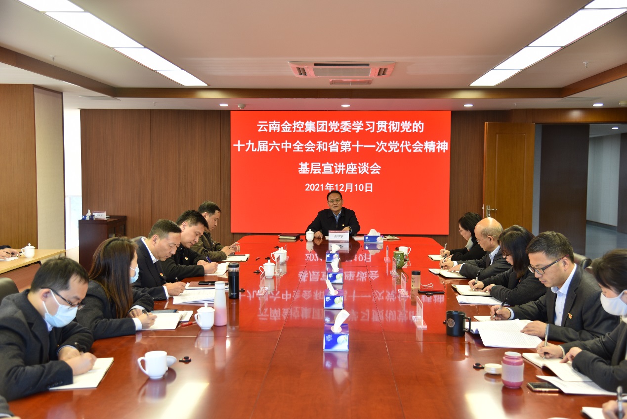 12月10日,云南金控集團黨委書記、董事長遲中華到省融資擔保公司宣講黨的十九屆六中全會和省第十一次黨代會精神,并開展實地調研。集團黨委副書記、工會主席李根斌,黨委委員、副總裁蔡瓊參加宣講和調研活動。