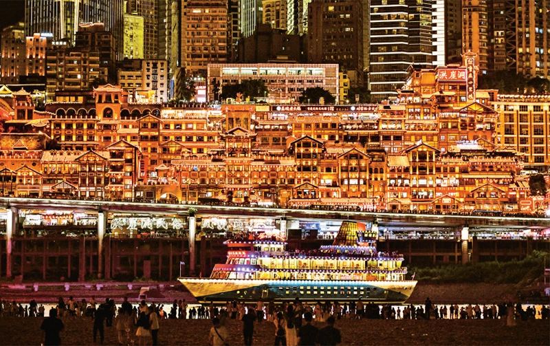 近年來,各地區充分發揮特色優勢,創造特色消費新空間,不斷豐富消費業態、提升消費體驗,有效激活市場潛力。圖為2025年5月28日,游客在重慶市乘坐游輪觀賞夜景。 新華社記者 王全超/攝