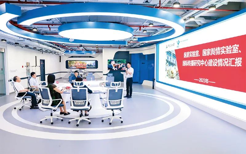 圖為2023年6月1日,教育部黨組第一巡視組在中國傳媒大學調研教育部首批試點建設的9家哲學社會科學重點實驗室之一——國家輿情實驗室。 教育部供圖