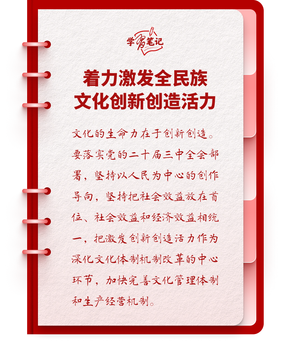 黨的二十大和二十屆三中全會都明確提出“激發全民族文化創新創造活力”,三中全會專門就深化文化體制機制改革作出全面部署。改革不是為了改而改,而是為了讓創新創造的空間充分釋放、源泉充分涌流。
