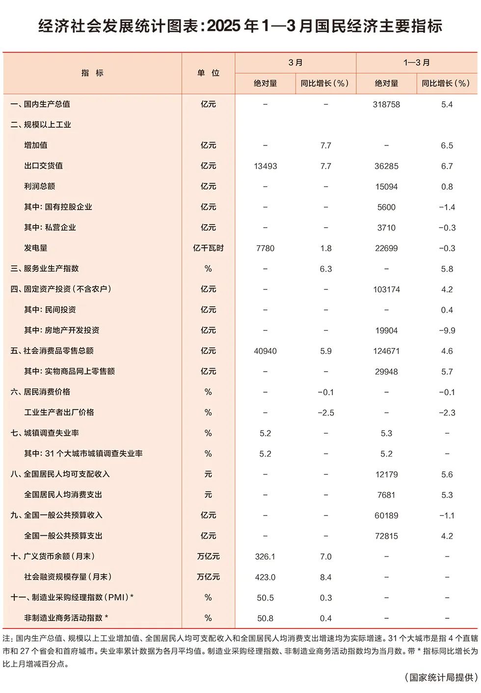 經濟社會發展統計圖表:2025年1—3月國民經濟主要指標