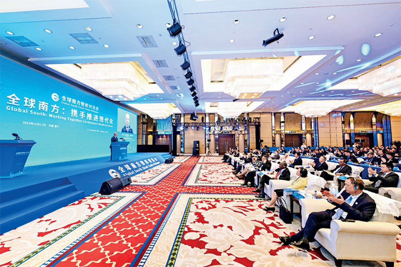 2023年11月2日,以“全球南方:攜手推進現代化”為主題的全球南方智庫對話會在福建省廈門市開幕。來自巴西、俄羅斯、印度、南非等50多個新興市場國家和發展中國家的智庫學者、政黨代表、企業界人士等300余人與會。圖為與會代表出席全球南方智庫對話會開幕式。中聯部供圖