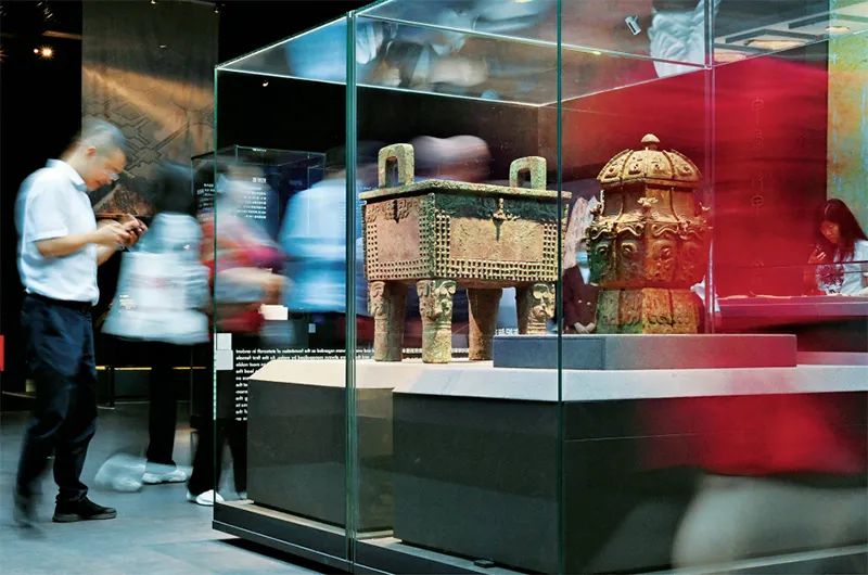 中國考古博物館是中國歷史研究院下設的國家級專業考古博物館,以考古出土文物和珍貴古籍文獻為依托,致力于展示與傳播中華優秀傳統文化。圖為2023年9月15日,觀眾在館內參觀珍貴文物展品。 新華社記者 李賀/攝