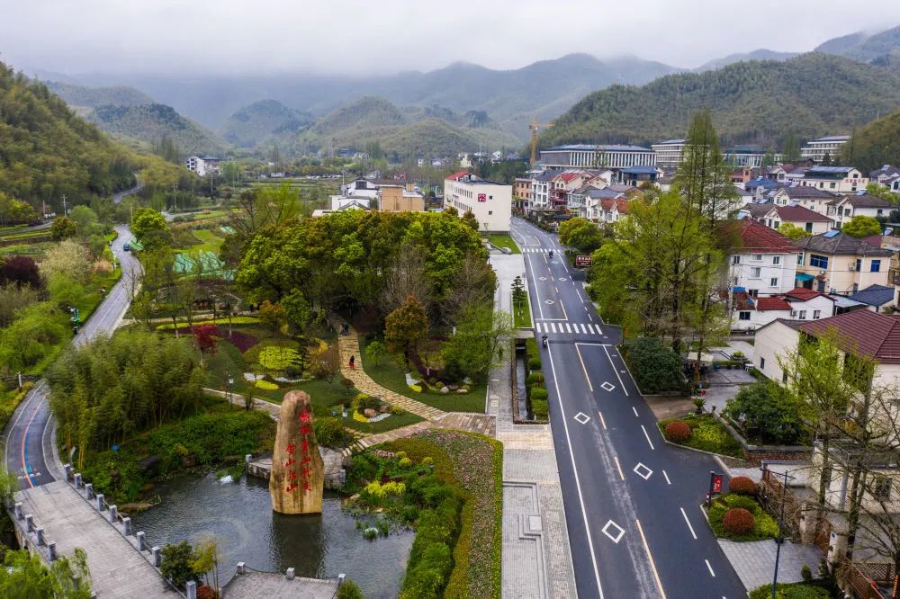 空中俯瞰浙江省安吉縣天荒坪鎮余村(無人機照片,2020年3月31日攝)。新華社記者 徐昱 攝