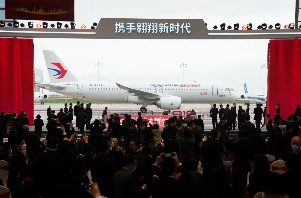 這是國產大飛機C919交付全球首家用戶東航的儀式現場(2022年12月9日攝)。新華社記者 丁汀 攝