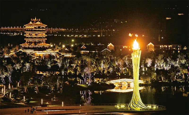 2023年7月28日晚,第31屆世界大學生夏季運動會開幕式在成都東安湖體育公園主體育場舉行。這是成都大運會主火炬。 新華社記者 曹祎銘/攝