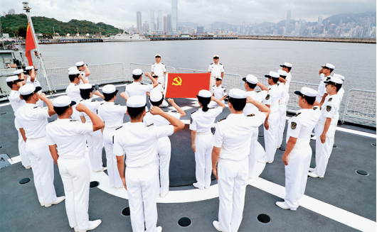 黨對(dui)軍(jun)隊(dui)(dui)的(de)(de)絕(jue)對(dui)領導(dao)是人(ren)民軍(jun)隊(dui)(dui)的(de)(de)建(jian)軍(jun)之本、強軍(jun)之魂。圖為2021年6月29日(ri),駐香(xiang)港(gang)部隊(dui)(dui)某(mou)艦艇大隊(dui)(dui)組織官兵向黨旗宣誓。新華社發 陳杰/攝