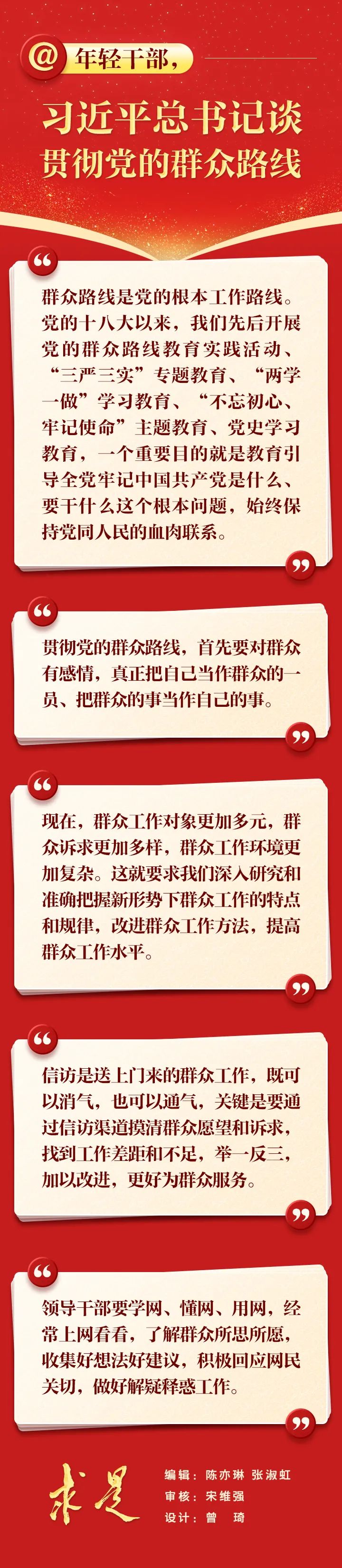 在2023年第13期《求是》雜志刊發的習近平總書記重要文章《努力成長為對黨和人民忠誠可靠、堪當時代重任的棟梁之才》中,總書記深刻指出:“我們把群眾當親人,群眾就會把我們當親人;我們真心實意關心群眾,群眾就會擁護和支持我們”,年輕干部要“貫徹黨的群眾路線”。
