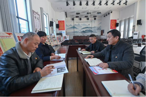 2022年以來,浙江省杭州市臨安區昌化鎮積極構建“黨員+農戶”網格治理機制,將全鎮黨員分層分類進行網格地域劃分,平均每個黨員聯系8至10家農戶,明確黨員具體服務事項,推動實現黨員常態化走訪,村兩委、黨員、農戶互相督促的管理機制。同時,定期組織機關黨員干部深入一線,聽民聲、曉民意、解民憂,推動農村基層治理有效提升。圖為2023年3月28日,在杭州市臨安區昌化鎮石鋪村黨群服務中心,石鋪村黨員網格長(右一、右二)向石鋪村兩委班子反饋本月走訪農戶情況。 ? ?新華社記者 徐昱/攝