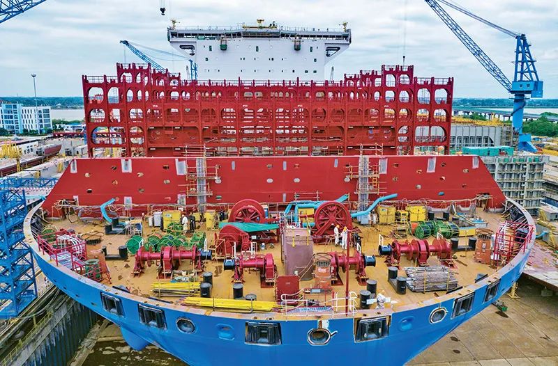 主題教育開展以來,各地區各部門堅持以習近平新時代中國特色社會主義思想為指導,以強化理論學習指導發展實踐,以深化調查研究推動解決發展難題,把學習和調研落實到完成黨的二十大部署的各項任務中去,形成推動高質量發展的強大動力。圖為2023年5月7日,江蘇揚州中遠海運重工有限公司開足馬力抓生產(無人機照片)。 新華社發 周社根/攝