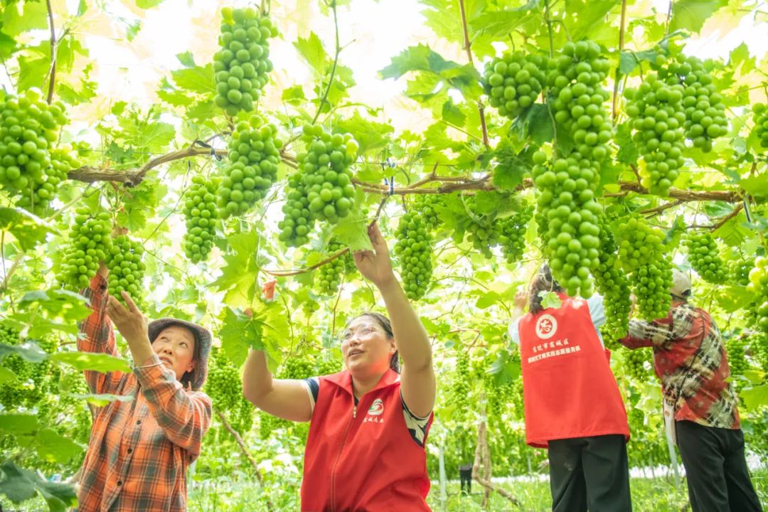 近年來,江蘇省宿遷市宿城區支口街道大力實施黨建引領強村富民工程,采取“黨建+合作社+農戶”運作模式,組織黨員志愿者走進田間地頭生產一線,引導群眾因地制宜發展山楂、葡萄等特色產業種植,拓寬增收渠道,助力鄉村振興。圖為2023年6月30日,在宿遷市宿城區支口街道探楚社區葡萄種植基地,黨員志愿者和果農一起管護葡萄。 ?人民圖片 徐江海/攝