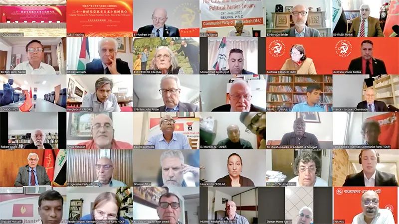 2022年7月28日,中國共產黨與世界馬克思主義政黨論壇舉行。習近平總書記在賀信中強調,中國共產黨愿同各國馬克思主義政黨加強交流對話,立足本國國情,把準時代脈搏,不斷豐富和發展馬克思主義,在攜手推動構建人類命運共同體的進程中讓馬克思主義展現出更強大的真理力量。圖為外國政黨代表線上參加論壇。 中共中央對外聯絡部供圖