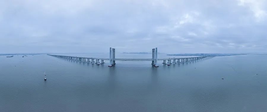 2023年2月3日,我國首條跨海高鐵——福廈高鐵進入靜態驗收階段,標志著全線主體工程及其配套工程建設已基本完成。圖為福廈高鐵泉州灣跨海大橋(無人機合成照片)。新華社記者 周義/攝