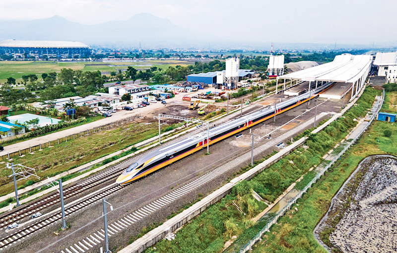 ?帶一路”倡議和中印尼兩國務實合作的標志性項目,雅萬高鐵全長142公里,最高設計時速350公里,連接印尼首都雅加達和萬隆,是中國高鐵首次全系統、全要素、全產業鏈在海外建設項目。圖為2022年11月16日,高速鐵路綜合檢測車行駛在雅萬高鐵試驗段(無人機照片)。新華社發 焦宏濤/攝