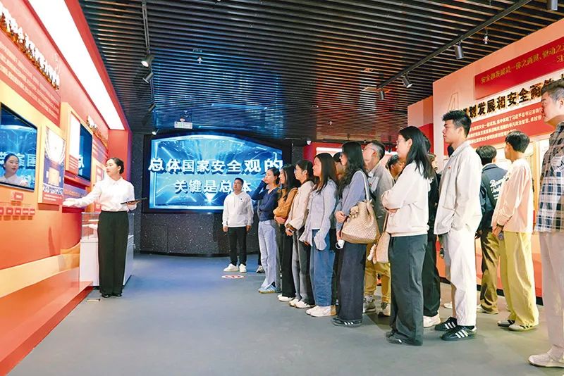 圖為2025年3月21日,試運營期間的廣東省國家安全教育館內,青年學生正在參觀學習。國安宣工作室供圖