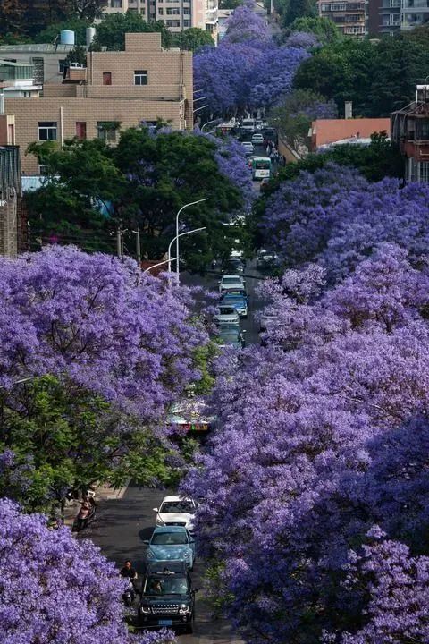 昆明教場中路的藍花楹 新華社記者 陳欣波 攝