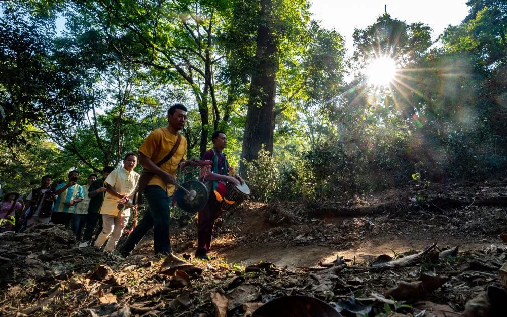 景邁山茶農前往古茶林準備舉行祭拜儀式。新華社記者 江文耀 攝