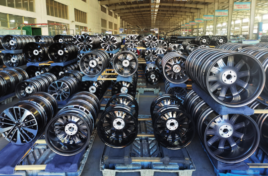 云南省曲靖市富源縣工業園區,云南富源今飛輪轂制造有限公司利用云鋁澤鑫鋁業電解的鋁液,生產汽車輪轂。陳永強 攝