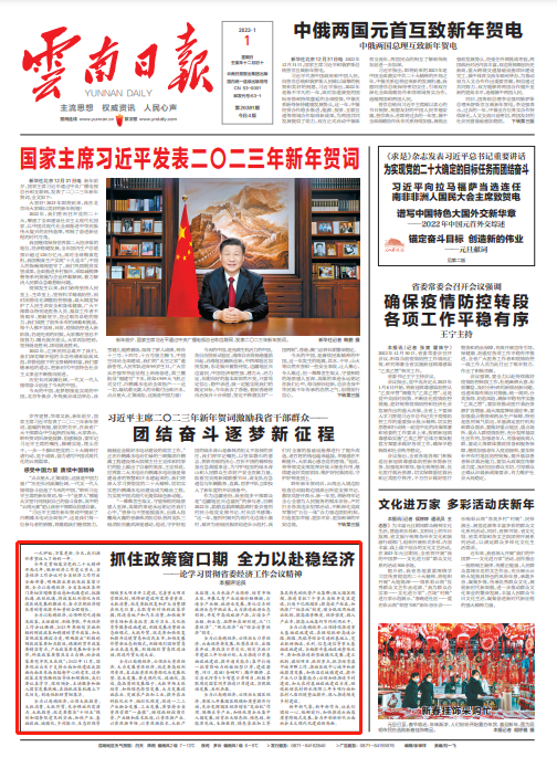 ?新年新氣象,新年新作為。讓我們團結一心、砥礪前行,加快推進云南高質量跨越式發展,奮力開創新時代云南社會主義現代化建設新局面。