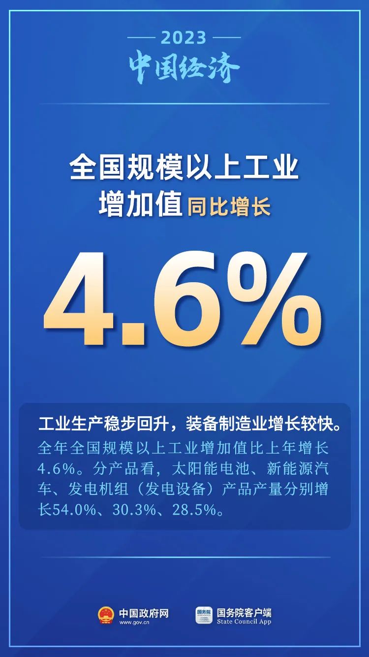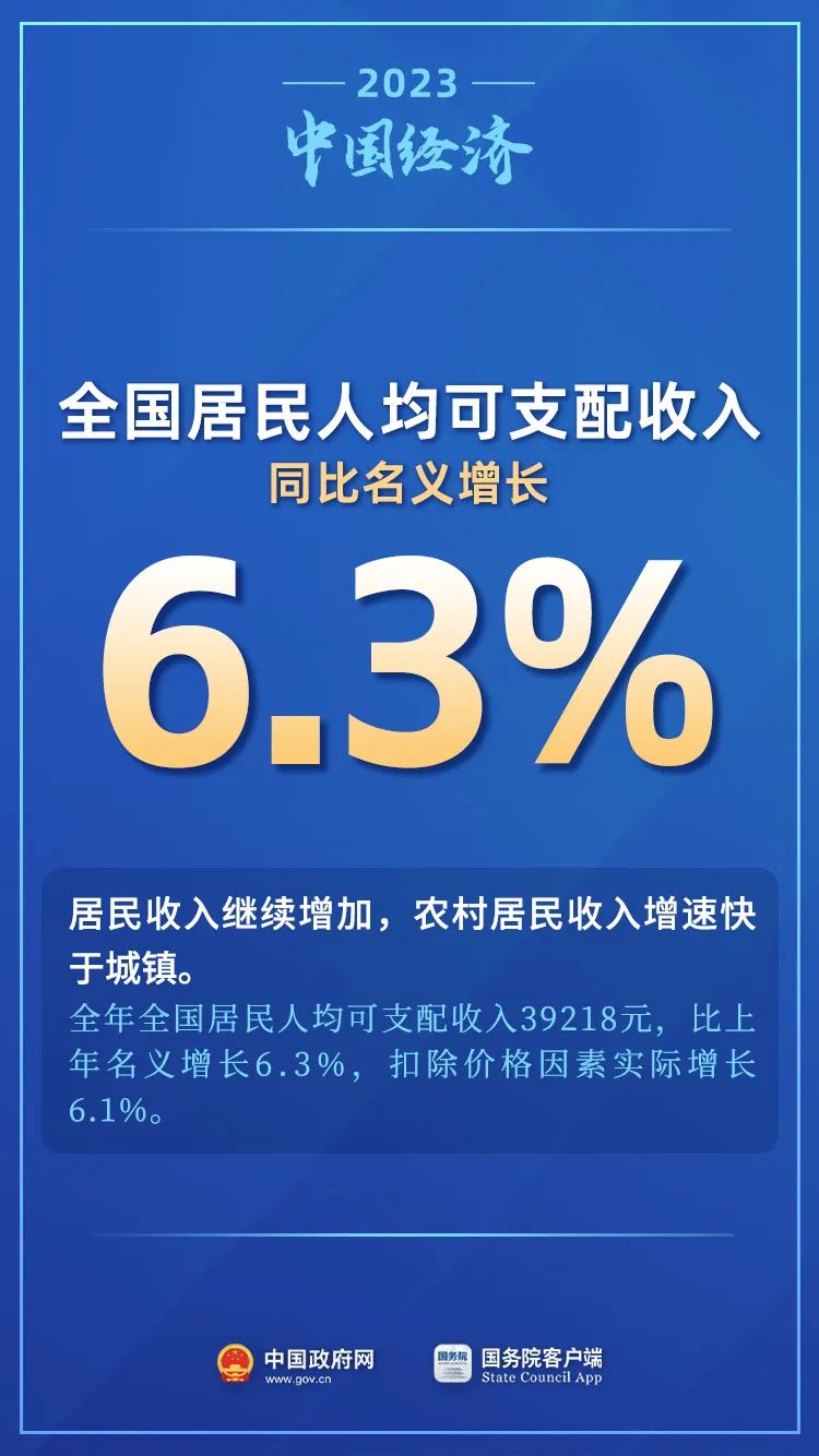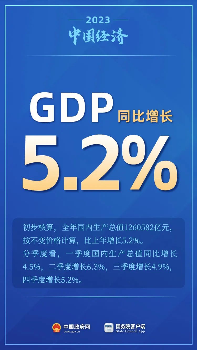 1月17日,國家統計局公布2023年國民經濟運行情況。2023年,我國經濟回升向好,供給需求穩步改善,轉型升級積極推進,就業物價總體穩定,民生保障有力有效,高質量發展扎實推進,主要預期目標圓滿實現。一起來關注——