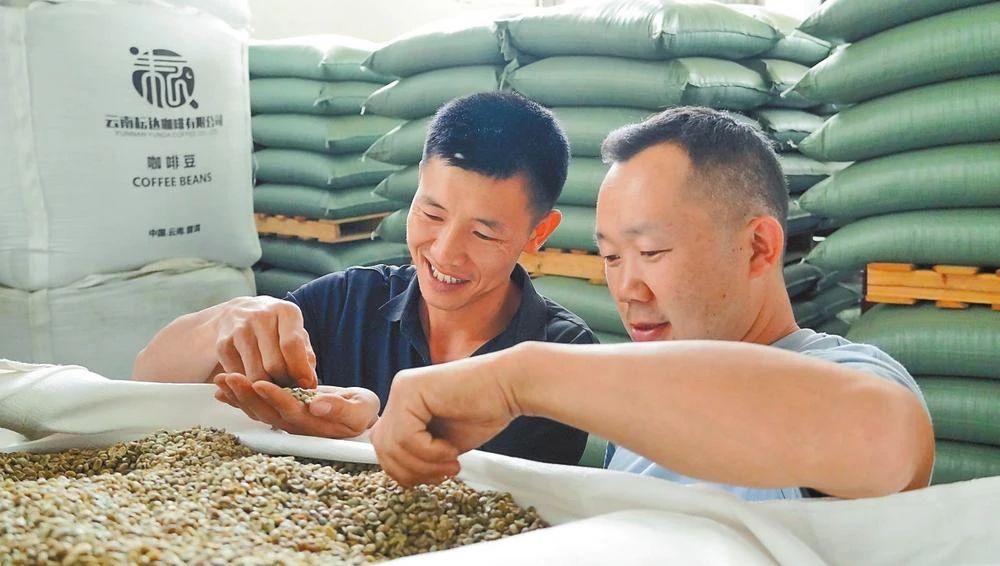 耘達公司工人檢查咖啡豆。圖源:云南日報在位于思茅區南屏鎮南島河村的云南耘達咖啡有限公司生產車間內,自動化生產線高速運轉,帶殼咖啡豆經過精準脫殼、智能分級后流向不同集料倉,即將發往全國各地。