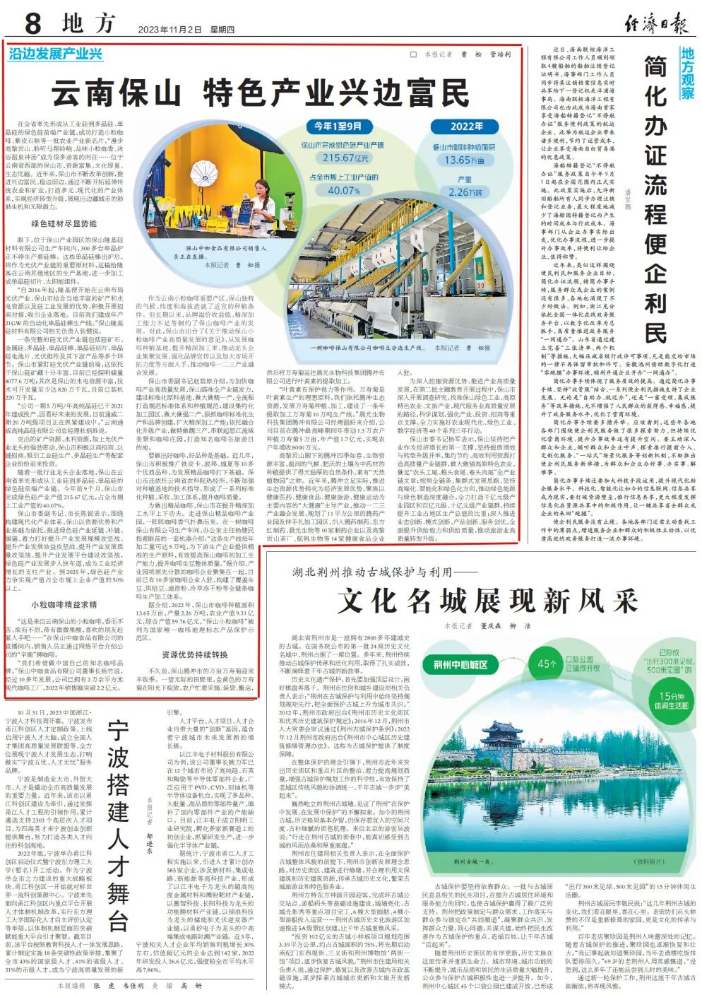 在全省率先形成從工業硅到多晶硅、單晶硅的綠色硅前端產業鏈,成功打造小粒咖啡、紫皮石斛等一批農業產業新名片,“漫步高黎貢山、聆聽馬幫鈴響、品味小粒咖香、沐浴溫泉神湯”成為很多游客的向往……位于云南省西部的保山市,資源富集、文化厚重、生態優越。近年來,保山市不斷改革創新,推進興邊富民、穩邊固邊,通過不斷開拓延伸傳統農業和礦業,打造多元、現代化的產業體系,實現經濟轉型升級,展現出邊疆城市的勃勃生機和無限潛力。
