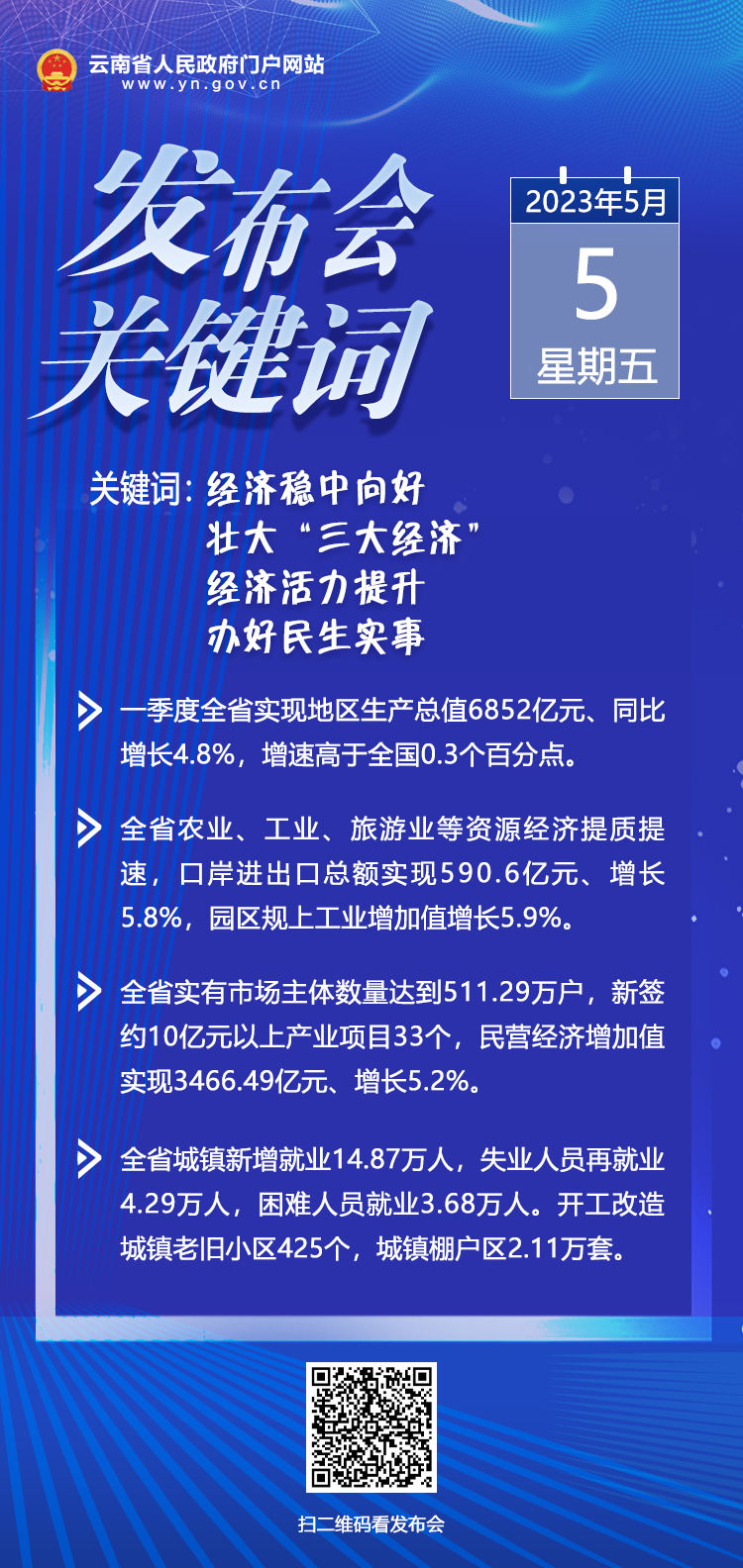 5月5日,云南省2023年一季度經濟運行情況新聞發布會在云南海埂會堂召開,相關負責人介紹2023年一季度我省經濟運行情況、工作亮點以及下一步重點工作部署,并回答記者提問。