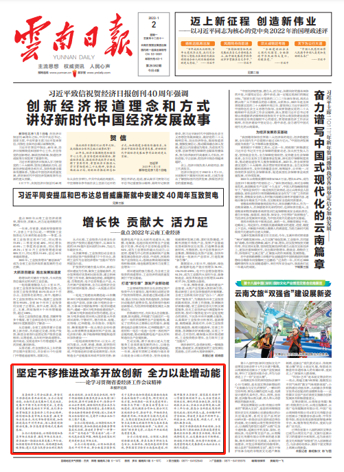 ?省委經濟工作會議提出,要堅定不移推進改革開放創新,全力以赴增動能。云南仍是后發展和欠發達地區,發展不平衡不充分問題突出,支撐高質量發展的基礎還不牢固,我們要全面貫徹落實省委經濟工作會議精神,持續增加各類市場主體數量、激發市場主體活力,優化市場營商環境,加快推進高水平對外開放,深入推進創新驅動發展,夯實高質量跨越式發展的基礎。