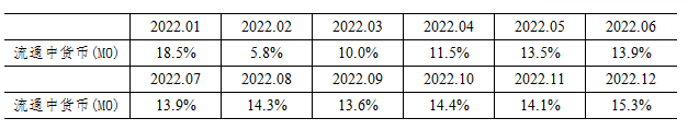 ?注4:自2022年12月起,“流通中貨幣(M0)”含流通中數字人民幣。12月末流通中數字人民幣余額為136.1億元。修訂后,2022年各月末M1、M2增速無明顯變化。修訂后M0增速如下: