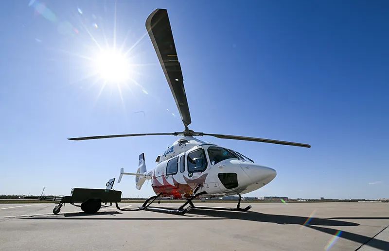 這是2023年4月7日在航空工業天津直升機有限責任公司停機坪拍攝的“吉祥鳥”AC332直升機。新華社記者 孫凡越 攝