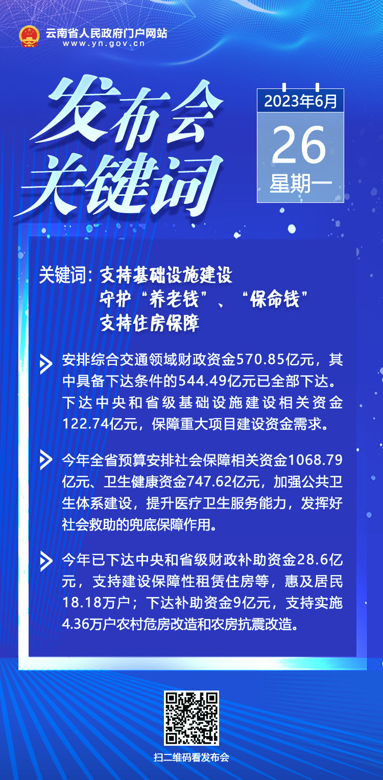 二是支持基礎設施強起來。安排綜合交通領域財政資金570.85億元,其中具備下達條件的544.49億元已全部下達,推動公路網、鐵路網、航空網重大項目建設。下達中央和省級基礎設施建設相關資金122.74億元,保障滇中引水工程、中老鐵路沿線開發、園區基礎設施、智慧口岸等重大項目建設資金需求。